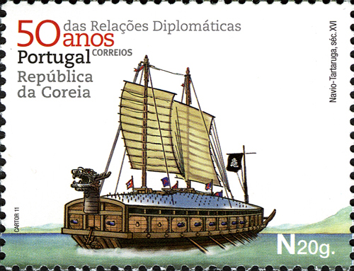 Notizie: Le navi testuggine (Kobukson o geobukson in coreano) erano delle navi coreane ideate e costruite dall'ammiraglio Yi Sun Sin per fronteggiare la flotta giapponese durante la guerra tenutasi in due riprese fra il 1592 ed il 1598. Questa classe di navi venne utilizzata ad intermittenza dalla marina reale coreana durante la dinastia Joseon tra il XV ed il XIX secolo, ma il suo peso bellico decrebbe in proporzione con la riduzione dell'efficienza della marina reale. Storicamente questa fu la prima tipologia di nave ad essere dotata di cannoni e dotata di corazzatura in ferro, seppur limitata al solo ponte di coperta, tanto che viene considerata la prima corazzata della storia. Sebbene la Corea sia una piccola nazione, ha anch'essa una storia navale, dovuta alla necessità di difendersi dalle invasioni giapponesi. Il loro più celebre ammiraglio ed eroe nazionale, Yi Soon Sin, inventò la kobukson, una grossa nave spinta da remi e da due alberi; aveva feritoie di tiro per archi, cannoni e mortai, poteva lanciare materiale infuocato ed era dotata di un ponte con punte acuminate, come misura anti abbordaggio, oltre a dimensioni considerevolmente superiori alle sue avversarie nipponiche, peraltro sempre superiori in numero. La kobukson derivava dalla precedente panokseon, lo standard coreano durante la guerra dei sette anni (1592-1598) col Giappone. Yi puntò sulla costruzione di potenti navi in grado di distruggere i fragili vascelli nipponici, in numero soverchiante (oltre 700 in alcune fasi contro, al più, un centinaio di navi coreane), e spesso riuscì ad ingaggiare battaglia ponendo il nemico in condizione di non poter sfruttare questa preponderanza numerica. Yi Soon Sin era considerato un tattico brillante ed innovativo in mare; grazie alle sue doti, la numericamente piccola marina coreana prevalse più volte contro flotte nipponiche, più numerose ma di capacità belliche inferiori, dal punto di vista individuale. Yi morì nell'ultima battaglia che segnò la sconfitta definitiva del Giappone ed il suo ritiro dalla Corea. Le navi in questione erano dotate di una pesante corazzatura sovrastante il ponte, la quale, grazie al suo spessore, era in grado di resistere a tutti i tipi di proiettili disponibili all'epoca, mentre la mancanza di aperture rendeva impraticabile l'abbordaggio. La corazzatura superiore ospitava punte acuminate e lame, mascherate sotto materassini di paglia che le nascondevano agli eventuali arrembatori avversari. Come già detto la nave era dotata di cannoni, in media 11, la cui portata si aggirava sui 300-500 metri, oltre ad una testa di drago dotata di zolfo, ma le aperture erano ben più numerose, ed i cannoni venivano spostati alla bisogna. La testa di drago posta sulla prua serviva a lanciare zolfo infuocato, ma anche come feritoia di tiro per cannoni ed armi portatili; sotto di essa vi era uno sperone in grado di devastare la fiancata delle navi avversarie, e attraverso la testa di drago si poteva poi inondare di fuoco l'interno senza protezione. La nave era costruita in legno di pino, dotato di una densità di 0,73 ben superiore alla media degli 0,41 - 0,45 degli altri legni utilizzati nella zona, con spessori di almeno 12 cm, questo la rendeva molto potente durante una collisione rispetto alle fragili anche se veloci navi giapponesi. Scarsamente manovrabile, poteva essere dotata di velatura, ma era sempre dotata di rematori, in quanto le vele non erano sufficienti a dotare all'imbarcazione sufficiente mobilità, a causa della sua grande massa. Ognuno degli 8 remi posti su ciascuna fiancata era manovrato da un caposquadra e 4 rematori, che in combattimento vogavano tutti insieme, ma potevano anche essere impiegati in 2 coppie che si alternavano. La vogata veniva disciplinata dal caporemo in modo da permettere anche la rotazione della nave, che probabilmente non era dotata di timone, come si vede dalle foto delle ricostruzioni e dai disegni dell'epoca. L'equipaggio era costituito da 80 rematori e 50 soldati, mentre le dimensioni dell'imbarcazione oscillavano dai 30 ai 37 metri. La sua struttura rendeva la nave inadatta al mare aperto, sia per mancanza di viveri, sia per la già citata scarsa mobilità. Esse solitamente erano impiegate lungo le coste, mentre in battaglia s'introducevano nelle formazioni nemiche e le devastavano. Una delle tattiche utilizzate, a cominciare dalla battaglia di Hansan, prevedeva la cosiddetta formazione ad ala di Gru (coreano: Hagik-jin), nelle quali l'ammiraglia guidava le altre navi disposte a mezzaluna che finivano per circondare le navi avversarie, e secondo il giornale di storia Giapponese “History Study” (maggio 2002) avrebbe ispirato l'ammiraglio Togo nella sua formazione a T utilizzata nella battaglia di Tsushima. In questa battaglia avvenuta nel maggio del 1592, alcune navi di tipo inferiore, le Panakseon, vennero poste come esca davanti alla flotta giapponese che era stata inviata in una missione di ricerca e distruzione della flotta coreana che era stata individuata da Toyotomi Hideyoshi come il principale ostacolo alla conquista della Corea. Non appena la flotta nipponica si mise in caccia, le navi si ritirarono verso la costa inseguite dai giapponesi, e vennero affrontate dalla squadra coreana inferiore forte di 51 navi e numericamente inferiore alle 73 schierate dai giapponesi; la formazione coreana si dispose allora a semicerchio circondando gli avversari ed attaccandone dietro preciso ordine di Yi l'ammiraglia riuscendo nella successiva confusione ad affondare 35 navi e catturarne 14, con perdite giapponesi stimate in circa 9.000 uomini. Un'altra battaglia che vide impiegata la Kobukson fu la battaglia di Won Kyun nel 1596, che a causa dell'incompetenza della guida della flotta, affidata ad un altro ammiraglio dopo che Yi era caduto in disgrazia ed esonerato dal comando, si concluse con la perdita di quasi tute le navi; su 134 se ne salvarono solo 12. Dopo aver ripreso il comando, Yi guidò la ricostituita f