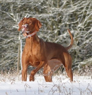 Descrizione: Classificazione F.C.I.: Gruppo 7 - cani da ferma. Origine: Ungheria. Il Bracco Ungherese a pelo corto (Rövidszörü Magyar Vizsla) assomiglia lontanamente al “Cane da ferma tedesco a pelo corto”, quest’ultimo chiamato anche “Kurzhaar”, ma con costituzione molto più leggera. È chiamato dagli ungheresi “Vizsla”. Le sue origini non sono molto documentate. Si sa per certo che siano molto antiche e rimandano ai cani che accompagnarono, nelle migrazioni verso occidente, i popoli indoeuropei che si situarono nelle regioni danubiane. Questi cani servivano per la caccia e all’occorrenza per la conduzione delle greggi e delle mandrie. Il suo progenitore è stato di fatto un Segugio a pelo corto, il “Segugio di Pannonia”, dal quale ha ereditato alcune caratteristiche somatiche tipiche, come l’orecchio lungo, il colore del mantello, ed anche il “Cane giallo turco” ha avuto il suo ruolo nella creazione di questa razza. I primi soggetti dotati della conformazione attuale sono apparsi all’inizio del XVIII secolo. È un razza molto diffusa in Ungheria. Assai conosciuto anche negli Stati Uniti, dove è stato introdotto all’inizio del ‘Novecento. Nel 1960 l’American Kennel Club ha riconosciuto la razza. È abbastanza diffuso in Italia, dove è stato introdotto da Jolanda di Savoia, la quale era un’appassionata cinofila. Aspetto generale. Cane di media taglia, classificato morfologicamente come tipo Braccoide. Cane elegante, a pelo corto. Ha una costituzione piuttosto leggera, che armonizza in modo perfetto, forza e bellezza. È costruito molto bene e molto ben proporzionato strutturalmente parlando. Ha una muscolatura asciutta ma ben sviluppata ed evidente. Possiede una buona ossatura rispetto alla mole. È tonico e dinamico. Nel lavoro alterna il trotto al galoppo, dimostrandosi abbastanza veloce. Carattere. Cane equilibratissimo, intelligente, calmo. È dolce e gioviale. Possiede una buona capacità di apprendimento. È molto rapido nei movimenti e nella corsa, comunque meno veloce del “Kurzhaar”. Idoneo a tutte le cacce ed a tutti i generi di terreni. A questa sua adattabilità si deve in gran parte il successo della razza presso i cacciatori. È un perfetto cane da ferma continentale. È dotato di un grande olfatto. Si dimostra anche un eccellente riportatore. Riesce molto bene nelle prove sul terreno. Sa essere anche affettuoso ed attaccato al padrone, dimostrandosi un discreto compagno.Standard: Altezza maschi da 56 cm a 61 cm - femmine da 52 cm a 57 cm. È ammessa una tolleranza di 4 cm in più o in meno, a condizione che l’insieme resti armonioso. L’equilibrio statico e dinamico e l’armonia delle forme sono molto più importanti delle misure espresse in cm. Peso: varia da 22 a 30 kg. Tronco: potente, proporzionato, un po’ più lungo che nelle razze inscivibili in un quadrato. Il garrese è accentuato e muscoloso. Il dorso è corto, dritto; reni sostenute; la linea superiore si arrotonda leggermente sino all’attaccatura della coda. Il torace è moderatamente largo, ben disceso sino al gomito. Le costole sono moderatamente arcuate; spalle muscolose, libere nei movimenti; scapole oblique. Testa e muso: asciutta, proporzionata, nobile. Il cranio è moderatamente largo, leggermente convesso. Il solco mediano è leggero e si estende dall’osso occipitale, moderatamente sviluppato, alla fronte. Lo stop è moderato. La canna nasale è sempre dritta. Il muso non è allungato, ma è largo. La mascella inferiore è ben sviluppata e muscolosa. Le labbra sono ben aderenti alla dentatura, mai pendenti. Tartufo: è ben sviluppato, con narici il più possibile aperte. Denti: bianchi, completi nello sviluppo e nel numero. Collo: di lunghezza media, muscoloso, leggermente tornito, senza giogaia, inserito nel tronco ad un’altezza media. Orecchie: di lunghezza media, sono attaccate leggermente arretrate e a un’altezza madia, vengono portate piatte contro le guance; ricoprono bene l’apertura del condotto uditivo e hanno la forma di una V arrotondata. Occhi: hanno una forma leggermente ovale e un’espressione vivace e intelligente. Le palpebre sono tese. Il colore degli occhi si armonizza a quello del mantello; è preferito il tono più scuro. Arti: anteriori dritti e hanno ossatura forte. I gomiti sono aderenti al tronco. Gli arti posteriori sono molto muscolosi, moderatamente angolati. I garretti sono un po’ bassi. Le dita sono forti, chiuse e ben arcuate. Il piede è leggermente ovale. Le unghie sono forti, i cuscinetti plantari elastici e duri. Andatura: vigorosa, armoniosa, ampia. In piano l’andatura caratteristica è il galoppo, sostenuto ed equilibrato. Muscolatura: asciutta, ma ben sviluppata in tutte le parti del corpo dell’animale. Coda: attaccata un po’ bassa; mediamente grossa, va assottigliandosi verso l’estremità che è leggermente incurvata verso l’alto, forma un tutt’uno con il corpo per tre quarti della sua lunghezza, perciò a volte se ne asporta chirurgicamente un quarto. Se la coda è bella, ben fatta e portata orizzontalmente, la caudectomia non viene effettuata. Pelle: tesa, senza rughe o pliche; pigmentata; tartufo color carne; labbra, palpebre e unghie marroni; cuscinetti plantari grigio-ardesia. Pelo: è aderente al corpo, corto, diritto, ruvido. Il ventre ha poco pelo. Il pelo delle orecchie è un po’ più corto e più sericeo. Il pelo della coda è più lungo. Colori ammessi: fulvo-sabbia. Le piccole macchie bianche sul pettorale e sui piedi, le tracce punteggiante, non sono considerate difetti. Difetti più ricorrenti: prognatismo, enognatismo, mancanza di premolari, misure fuori standard, colori del manto non ammessi, carattere timido o aggressivo, labbra pendenti, pelle staccata sulla testa, occhi piccoli, occhio chiaro, garrese appiattito o incurvato, torace non abbastanza disceso, costole piatte, pelo poco spesso, entropion, ectropion, canna nasale molto arcuata, canna nasale montonina, movimenti s
