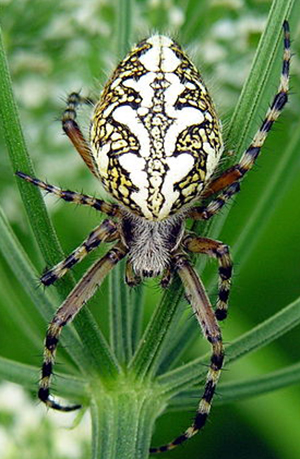 Di facile identificazione per il disegno a forma di foglia di quercia sul suo addome; la femmina č pių grande misurando 14 mm contro gli 8 del maschio.