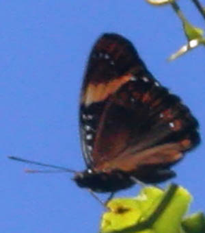 È una grande farfalla marrone con ali anteriori bordo concavo con una banda arancione che attraversa l'ala, l'apice è un triangolo marrone, mentre una banda submaginale arancione contrassegnata da una linea di ocelli marroni cucita con ornamenti bianchi ali posteriori. Il rovescio è marrone con la stessa banda arancione sulla parte anteriore e la linea submarginale di punti bianchi che centrano gli ocelli.