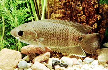 Lunghezza massima: 12,9 cm maschio/non sessuato; 18,2 cm (femmina); massimo peso pubblicato di 125,00 g. Spine dorsali (totale): 16 - 18; Raggi molli dorsali (totale): 10-13; Spine anali : 8-10; Raggi molli anali : 10 - 13; Vertebre : 25 - 26. Diagnosi: muso smussato; mascelle debolmente protrusibili (processo ascendente della premascella corto, che non raggiunge il bordo anteriore dell'orbita). Pinne pelviche leggermente pigmentate o non pigmentate. Labirinto composto da una piastra complessa e multipiega. Adulti di dimensioni superiori a 75 mm SL; profondità del corpo in SL solitamente meno di 3 volte; macchia alla base della pinna caudale senza anello chiaro negli adulti; lacrimale mai seghettato. Corpo e testa grigi o marrone chiaro, fianchi senza leggere chiazze. Scale 3-3.5 nella serie verticale superiore e 8-8.5 in quella inferiore. 4 squame dall'ultima scala con pori nella linea laterale superiore alla base della pinna dorsale (contando la scala con pori). 10-18 scaglie con pori nella linea laterale superiore, 9-14 in quella inferiore (Rif. 93191 ). 11-16 scaglie sull'opercolo destro; inter orbita nella lunghezza della testa 2,3-3,0. Respirazione aerea obbligatoria. Produce fino a 20.000 uova. (Testo da: www.fishbase.se).