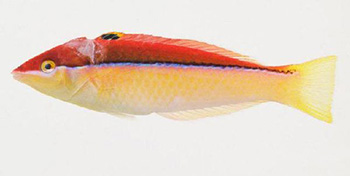 Raggiunge una lunghezza massima di 13 cm. La membrana interspinosa tra le due o tre spine anteriori della pinna dorsale presenta una macchia nera; maschi con testa gialla e ampiamente reticolata; la regione addominale dietro le pinne pelviche e pettorali è da arancione a rosa-arancio con segni di campitura gialli; parte posteriore del corpo viola nero; le femmine sono distintamente bicolori, arancio-marrone dorsalmente, bianco ventralmente. Si nutre di piccoli invertebrati. L'accoppiamento è oviparo e distinto durante la riproduzione. (Testo da: www.FishBase.se).
