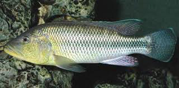 La specie ittica può raggiungere una lunghezza di 56 cm e un peso massimo di 6,1 kg. Questo lo rende la più grande specie di ciclidi del lago Malawi ed è superata solo da poche specie di pesce gatto. È massiccio, ha una testa grande e una bocca profondamente biforcuta. I maschi sono verde oliva, la testa e la schiena sono più scure rispetto al resto del corpo. Man mano che i pesci invecchiano, diventano sempre più scuri. Le pinne dorsali e caudali sono colorate come il corpo e foderate di rosso, la pinna anale è leggermente giallastra tendente al rosa. La pinna caudale e le sezioni a raggi molli delle pinne dorsali e anali hanno punti arancioni che sono più prominenti nei maschi di corteggiamento. Quindi i maschi ottengono anche un ventre e una gola gialli, mentre il petto e le pinne accoppiate diventano nere. Le femmine e i giovani sono di colore da giallo a marrone oliva e hanno due strisce longitudinali scure ai lati del corpo. Si nutre principalmente di pesci più piccoli, tra cui mbuna e ciclidi che vivono nei fondali sabbiosi. Inoltre, vengono mangiati molluschi, insetti, le loro larve e crostacei. Si riproduce nell'estate meridionale da settembre a febbraio e può produrre diverse covate da tre a cinque settimane l'una dall'altra durante questo periodo. Come tutti i ciclidi aplocrominici, è un incubatore orale, in cui la femmina assume la cura della covata. Per la deposizione delle uova, il maschio scava una buca di sabbia con un diametro di circa 40 cm e una profondità di circa 10 cm. I giovani pesci che nuotano liberamente, non più protetti dai genitori, evitano il mare aperto.