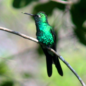 È uno dei due uccelli nazionali di Cuba. Il maschio, è verde scuro con sfumature azzurro metallico, la coda è biforcata ed il becco lungo ed appuntito. La femmina, è simile con i fianchi verdi meno appariscenti, mentre la biforcazione della coda è un po' meno marcata. Entrambi i sessi hanno punteggiature biancastre dietro l'occhio. Sono molto attivi e territoriali. Sono facilemte osservabili, durante il giorno, spostarsi velocemente di fiore in fiore nelle zone verdeggianti ed ombrose, limitrofe ai litorali. Questi colibrì si alimentano prevalentemente di nettare e di insetti ed hanno un ruolo attivo nell'impollinazione di diverse specie di fiori.