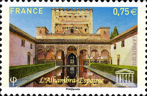 Notizie: L'Alhambra è un complesso palaziale andaluso a Granada. Etimologicamente, Alhambra in arabo è "al-Hamra'" (la Rossa), dal momento che il suo nome intero era Qalat al-hamra. (Fortezza rossa). Secondo talune versioni il nome veniva dal colore rosato delle mura che circondavano l'Alhambra. L'Alhambra è una vera città murata (medina) che occupa la maggior parte del colle della Sabika, mentre per parte sua Granada fruiva di un altro sistema di mura protettive di cinta. Pertanto l'Alhambra poteva funzionare in modo autonomo rispetto a Granada. Nell'Alhambra vi erano tutti i servizi propri necessari agli abitanti che vi vivevano: moschee, scuole, botteghe e altro. Nel 1238 fece il suo ingresso a Granada dalla Porta di Elvira, per occupare il Palazzo del Gallo del Vento, Muhammad ibn Nasr (noto anche come Nazar), chiamato al-Hamar, "Il Rosso", perché aveva la barba di colore rossiccio, fondatore della dinastia nasride. Quando Muhammad ibn Nasr entrò trionfatore a Granada, la popolazione lo accolse al grido di Benvenuto al vincitore per la grazia di Dio, al quale egli rispose dicendo: Non v'è altro vincitore se non Dio. Questo è il motto dello stemma nasride ed è scritto in tutta l'Alhambra. Muhammad ibn Nasr fece edificare il primo nucleo del palazzo. Suo figlio Muhammad II, che fu amico di Alfonso X di Castiglia, lo fortificò. Lo stile granadino nell'Alhambra rappresenta il punto supremo raggiunto dall'arte andalusa, che non si realizzò fino alla metà del secolo XIV con Yusuf I e Muhammad V nel 1333 e 1354. Nel 1492, con la conquista di Granada da parte dei Re Cattolici, l'Alhambra passò ad essere palazzo reale dei re castigliani e questo salvò il complesso dalla distruzione patita invece da tanti altri monumenti islamici a seguito della Reconquista. Il Comitato del patrimonio mondiale dell'UNESCO ha dichiarato l'Alhambra e il Generalife di Granada Patrimonio Culturale dell'Umanità nella sua sessione del giorno 2 novembre 1984. È stata nominata uno dei 21 candidati finalisti per essere indicata una delle sette meraviglie del mondo moderno.