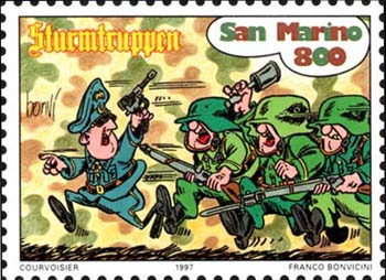 Soggetto: Sturmtruppen Anno: 1997 Dentelli: 11¾ Tiratura: 200.000 Stampa: Rotocalco Bozzettista: F. Filanci |