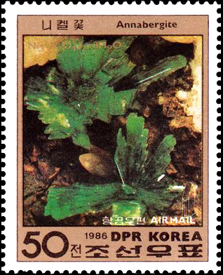 Notizie: La annabergite è un minerale, un arseniato idrato di nichel. Il nome deriva dalla località di Annaberg, in Sassonia. Descritta per la prima volta da Henri James Brooke (1771 - 1857), cristallografo e mineralogista inglese e William Hallowes Miller (6 aprile 1801 - 20 maggio 1880), cristallografo e mineralogista inglese, nel 1852. Abito cristallino: in piccoli cristalli appiattiti prismatici e aghiformi. Origine e giacitura: è un minerale secondario caratteristico delle zone di alterazione dei giacimenti a solfuri di nichel, detto anche fiore di nichel. La paragenesi è con eritrite, antlerite, gersdorffite, scorodite, malachite, azzurrite, farmacolite e cloantite. Forma in cui si presenta in natura: si presenta in cristalli, in aggregati terrosi e polverulenti, incrostazioni, masse sferoidali fibroso-raggiate. Caratteri fisico-chimici: solubile negli acidi, al cannello cambia colore prima di fondere; va pulita con acqua distillata. Località di ritrovamento: ad Annaberg e Schneeberg, in Sassonia; a Laurion, in Grecia; a Sierra Cabreira, in Andalusia, regione spagnola; a Cobalt, nel Canada; a Jachymov, nella Repubblica Slovacca; ad Allemont, in Francia. In Italia la si può rinvenire al Colle del Paschietto nel comune di Balme e nelle miniere di Punta Corna e di Torre d'Ovarda nel comune di Usseglio in provincia di Torino; a Sant'Acquas is Runas, Punta Pira Inferida e Riu Planu is Castangias, tutte nel comune di Gonnosfanadiga, in provincia di Cagliari; infine a Perdas Oliu e a Perdas de Fogu, nel comune di Fluminimaggiore, sempre in provincia di Cagliari. Varietà: una sua varietà con una rilevante percentuale di magnesio al posto del nichel è la cabrerite.