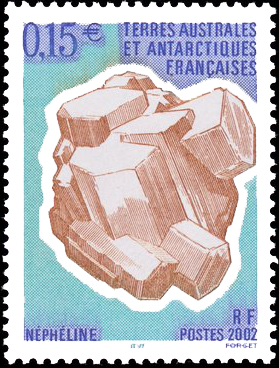 Notizie: La nefelina č un minerale comune, si presenta in cristalli prismatici esagonali, di frequente geminati, e in masse compatte o individui granulari. La nefelina puņ essere bianca, incolore, grigia, giallastra, verde scuro, rosso bruno. Ha stria bianca. Č un minerale da trasparente a traslucido, con lucentezza da vitrea a grassa. Si trova in molte rocce ignee, alcaline e povere di silice, specie se di composizione intermedia. Si rinviene in sieniti (sieniti nefeliniche), in pegmatiti e, solo occasionalmente, in scisti e gneiss. Abito cristallino: i cristalli hanno un abito da prismatico a colonnare con sezione esagonale, di solito perņ la nefelina si presenta massiva o granulare. La nefelina si ritrova in rocce plutoniche e vulcaniche ricche in alcali, tali rocce possono essere basalti, fonoliti, sieniti, monzoniti e nefeliniti. Giacimenti: USA (Maine), Canada (Ontario), Russia (nella penisola di Kola), Germania (Sassonia), Italia (Monte Vesuvio).