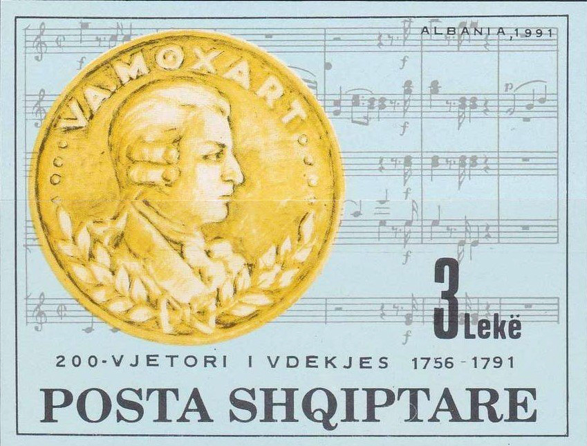 Soggetto: Mozart Wolfgang Amadeus Emissione: 200° anniversario della morte di W. A. Mozart Anno: 15/10/1991 Stampa: Offset |