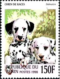 Descrizione: Classificazione F.C.I.: Gruppo 6 - segugi e cani per pista di sangue. Origine: ex-Jugoslavia. Questa è indubbiamente una razza antica, ma è tutt’oggi difficile stabilire quali siano i suoi progenitori e quanti secoli fa si sia originata. Esistono raffigurazioni di cani bianchi a macchie nere in molte parti d’Europa, dell’Africa e anche in Asia. Alcuni autori sostengono la teoria che il suo ascendente sia stato il “Bracco del Bengala”, ormai estinto, che fu incrociato con il “Bull terrier” e poi con il “Pointer”. Molti affermano che il progenitore del Dalmata sia lo stesso dell’Alano arlecchino”. L’unico ascendente dichiarato dalla Federazione Internazionale è il “Pointer d’Istria”. Durante le guerre balcaniche del 1912, la razza ha svolto servizi militari come cane messaggero staffetta, in particolare in Dalmazia. La razza si è diffusa via via in tutta Europa. Ha avuto un grandissimo impulso dopo il lungometraggio animato di Walt Disney “la carica dei 101”, che ha reso popolare la razza in tutto il mondo. Ben allevata anche in Italia. Aspetto generale. Cane di media taglia, ben proporzionato, forte, abbastanza muscoloso, reattivo e di buona prestanza. Razza dalle linee armoniose e non dai tratti grossolani né pesanti; razza piuttosto elegante e raffinata. Il suo aspetto è simpatico. La caratteristica che la rende unica è il particolare mantello bianco a macchie nere o fegato, ormai nota anche ai più inesperti. Carattere. Nonostante l’apparenza possa ingannare, il Dalmata è una razza di notevole resistenza fisica. È un cane molto festoso e gioviale in ogni momento. Piuttosto giocherellone e allegro. Ama molto essere preso in considerazione dal padrone. Cane molto affezionato e fedele. Talvolta dispettoso, ma mai cattivo. Non deve mai presentarsi né pauroso né timido verso coloro che non conosce e neanche verso la famiglia che lo accudisce. Può vivere senza problemi sia in casa che in appartamento, poiché è una razza pulita e abbastanza precisa e attenta. Discretamente intelligente e abbastanza ben addestrabile. È indubbiamente un eccellente compagno di giochi per i bambini e anche per adulti. Standard. Altezza: maschi tra i 55 ed i 61 cm - femmine tra i 50 ed i 58 cm. Peso: da 22 a 26 kg. L’armonia generale è di primaria importanza per questa razza. Tronco: il torace non deve essere troppo largo, ma deve comunque essere alto e avere una buona capacità per il cuore ed i polmoni. Le costole sono ben arcuate. Il garrese è ben marcato. Il dorso è potente e dritto. Le reni sono forti, ben fatte, muscolose e leggermente spioventi. Testa e muso: deve avere una buona lunghezza totale. Il cranio è piatto, ragionevolmente largo fra le orecchie, ma sfilato, ben disegnato ma con moderazione a livello delle tempie. Presenta uno stop moderatamente marcato. La testa non è in linea retta dal tartufo all’occipite. Non deve presentare rughe. Il muso è lungo e potente, mai a fischietto. Le labbra hanno una linea precisa, sono aderenti alle mascelle senza essere troppo strette. Tartufo: nella varietà a macchie nere, il tartufo deve sempre essere nero; nei soggetti a macchie fegato, il tartufo è sempre marrone. Denti: completi nel numero. Chiusura a forbice, con gli incisivi superiori sovrapposti strettamente sulla parte alta di quelli inferiori. Collo: di buona lunghezza, tornito in modo aggraziato; è leggero e va assottigliandosi verso la testa. Non deve avere giogaia. Orecchie: l’attaccatura è abbastanza alta, la loro grandezza è media. Sono abbastanza larghe alla base e vanno stringendosi verso l’estremità arrotondata. Sono fini al tatto e portate ben aderenti alla testa. Devono avere macchie ben distribuite, preferibilmente di forma arrotondata. Occhi: distanziati ma senza eccesso. Di grandezza media. Sono rotondi, vivaci e lucidi. Hanno espressione intelligente. Sono scuri nei soggetti a macchie nere, ambrate in quelli a macchie fegato. Tutto il contorno degli occhi deve essere nero nei soggetti a macchie nere, fegato nei cani a macchie fegato. Arti: i gomiti sono aderenti al corpo. Gli anteriori sono perfettamente diritti. Hanno ossatura rotonda e forte fino al piede, con una leggera curvatura a livello dell’articolazione del carpo. Piedi rotondi, compatti. Dita ben arcuate. Cuscinetti plantari rotondi, duri ed elastici. Posteriore arrotondato con muscolatura ben definita. Gamba ben sviluppata. La grassella ha una buona curvatura. Garretto ben disegnato. Spalla: moderatamente obliqua, ben disegnata e muscolosa. Andatura: deve essere sciolto nelle sue andature. Il movimento deve essere coordinato, potente, ritmico, dalle lunghe falcate. Visti da dietro, gli arti si spostano su piani paralleli e quelli posteriori formano una traccia semplice con quelli anteriori. Il passo corto e gli arti che “falciano l’erba” sono da considerarsi difetti. Muscolatura: tonica, sviluppata ed evidente. Coda: raggiunge approssimativamente il garretto. L’attaccatura non deve essere né troppo alta né troppo bassa. Non deve essere grossolana. Viene portata con una leggera curvatura verso l’alto ma non è mai arrotolata. Porta preferibilmente delle macchie arrotondate. Pelo: corto, duro e folto. Dall’aspetto liscio e lucente. Colori ammessi: il colore di fondo è bianco puro. I soggetti a macchie nere devono avere numerose macchie a forma di monete nere. Nei cani a macchie fegato, queste sono marrone-fegato. Le macchie non devono confondersi. Le macchie sono rotonde e ben disegnate, il più possibile ben distribuite. Le macchie all’estremità sono più piccole di quelle situate sul corpo. Difetti più ricorrenti: prognatismo, enognatismo, ampie macchie colorate, macchie rotonde nere e macchie rotonde fegato nello stesso cane (tricolore), macchie rotonde limone, occhi blu, tonalità bronzo, difetti di pigmentazione, movimento scorretto, misure fuori standard, monorchidismo, criptorchidismo, cane alto sugli arti, cane troppo gr