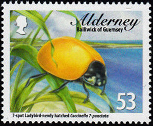 Emissione: Fauna - Coccinelle a Alderney Stato: Alderney Nota: Emesso in un foglietto di 6 v. diversi e in un libretto |