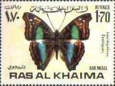 Emissione: Farfalle Stato: Ras Al Khaima Nota: Tariffa per Posta Aerea |