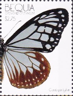 Emissione: Farfalle del Carribe Stato: Bequia Nota: Emesso in un foglietto di 4 v. diversi Caduga lytia non ho reperito nulla in rete |