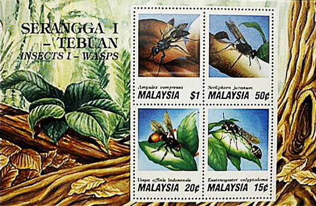 Sceliphorn javanumEmesso in un foglietto di 4 v. diversi |