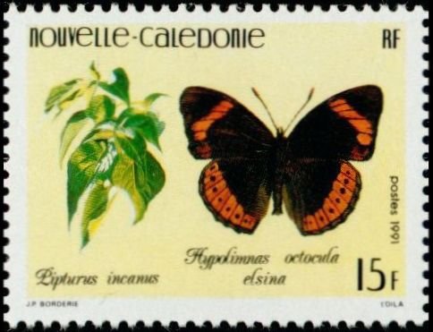 Hypolimnas octocula elsinaEmesso in un striscia di 4 v. pił vignetta centrale senza valore |