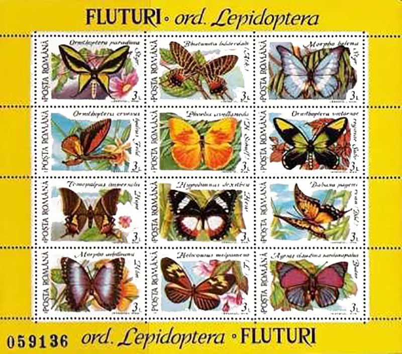 Ornithoptera croesusEmesso in un foglietto di 12 v. diversi |