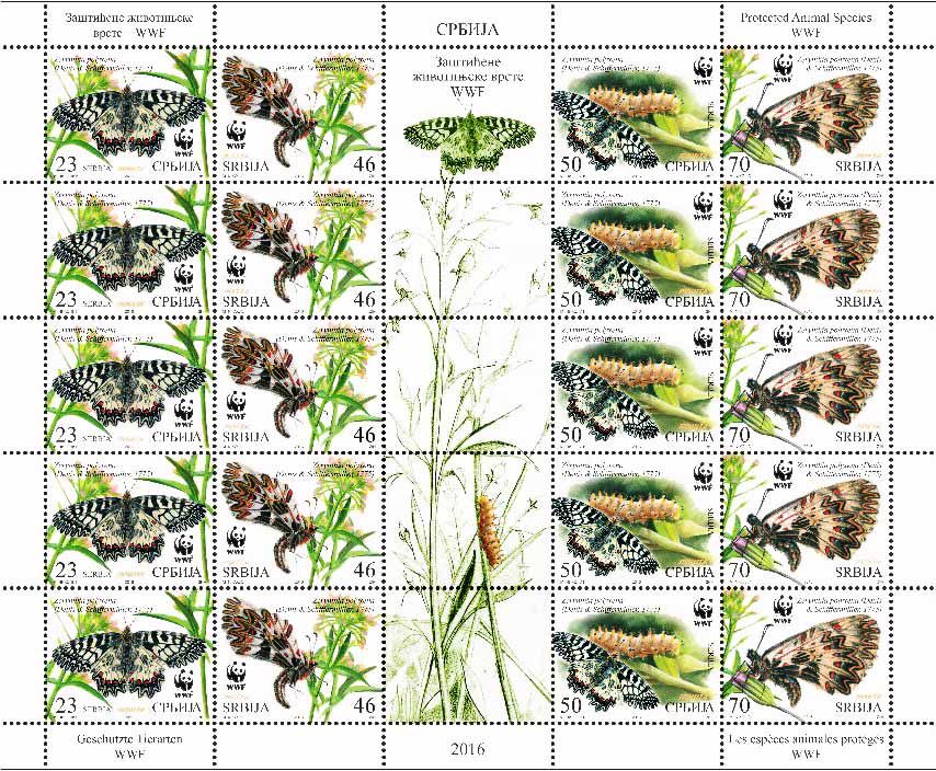 Zerynthia polyxenaEmesso in un foglietto di 4 v. dibersi x 5