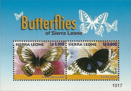 Junonia sophiaEmesso in un foglietto di 2 v. diversi |